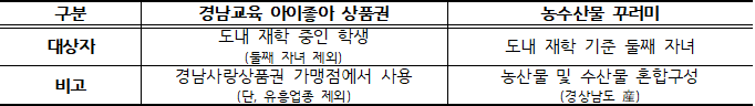 ▣ 경남 교육재난지원금 지원내용