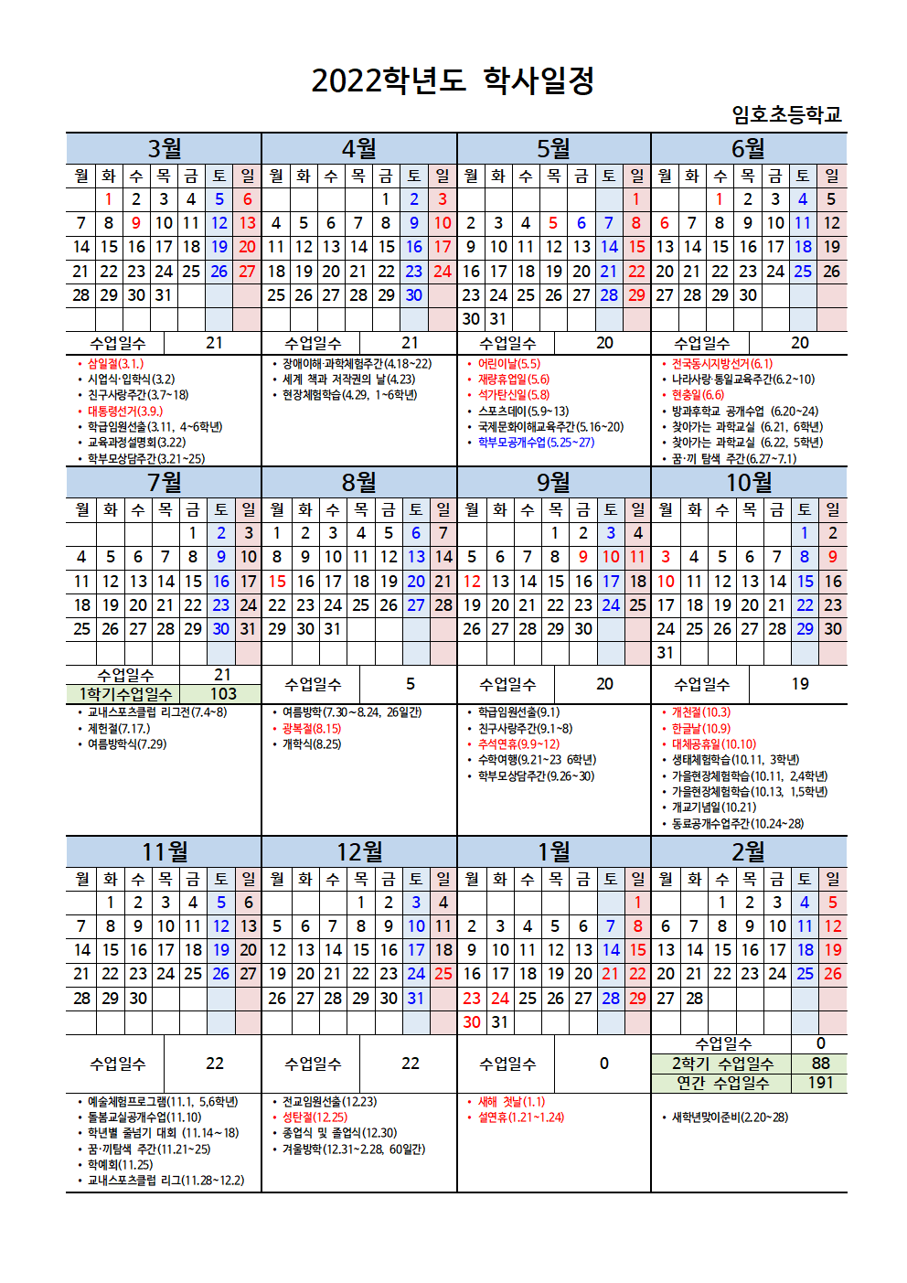 2022학년도 등교시간&방법, 3월2일(수) 일정 안내